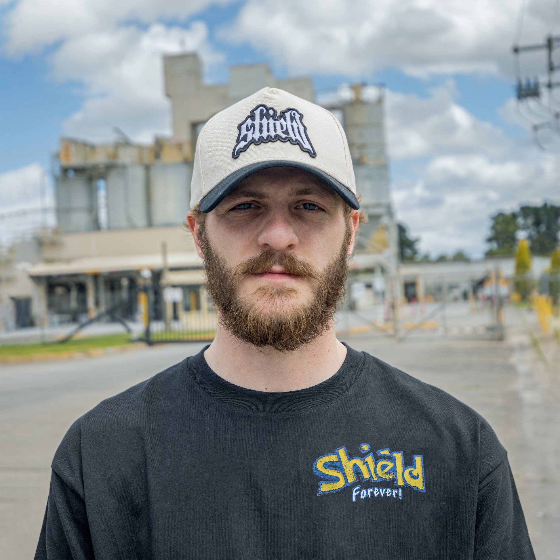 Structured 5 Panel Baseball Cap with Embroidered Logo Patch & Adjustable Straps.